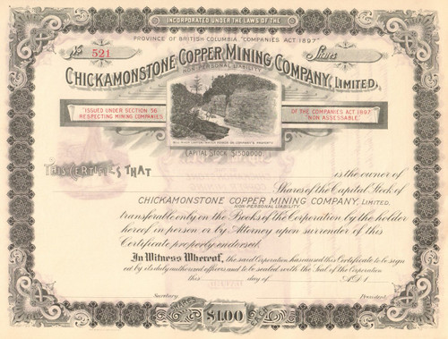 - Chickamonstone Copper Mining Company stock certificate circa 1897